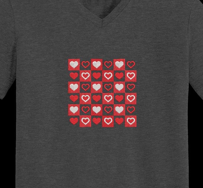 Motif de broderie machine cœurs damier.