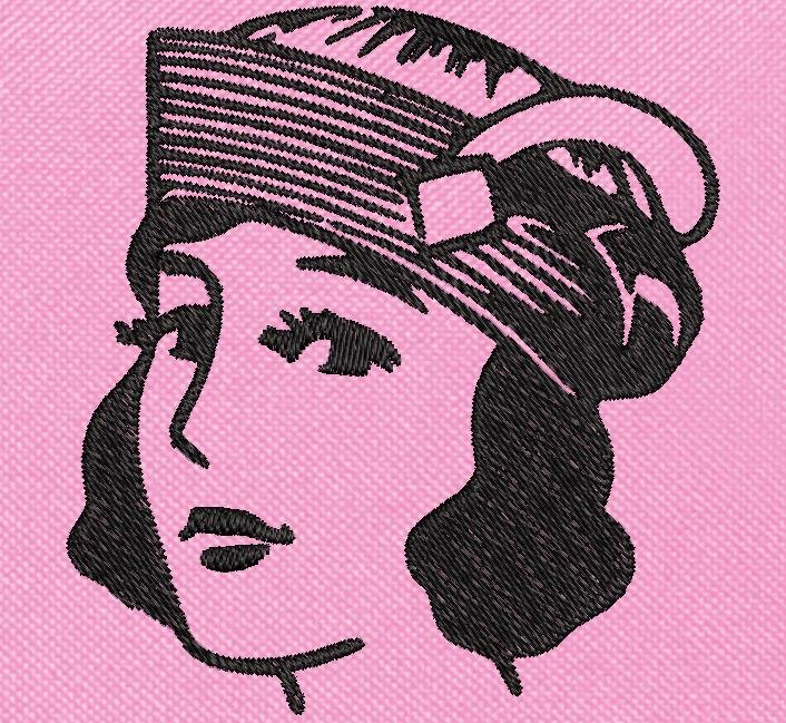 femme vintage avec un chapeau motif de broderie machine gratuit.
