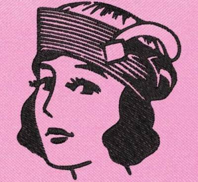 fille vintage avec un chapeau motif de broderie machine gratuit