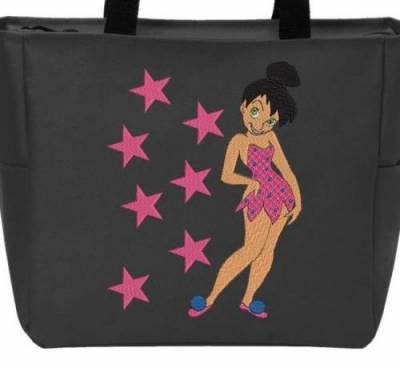 Motif de broderie machine de la fille aux étoiles avec ses chaussons et sa belle robe à pois