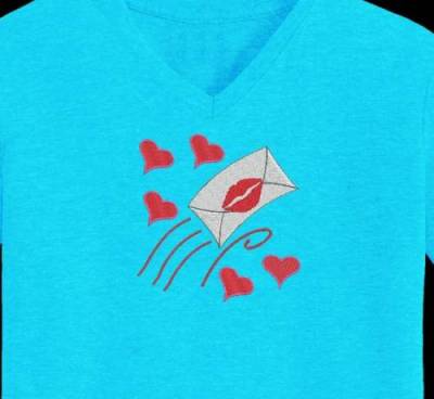 Motif de broderie machine d’une lettre d’amour suivie de cœurs qui filent vers la saint valentin.