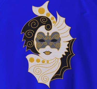 Motif de broderie machine qui représente un masque de carnaval vénitien .