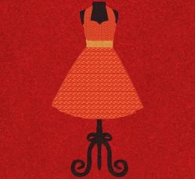 Motif de broderie machine d’une ancienne robe vintage des années 50 sur un grand buste de couture mannequin