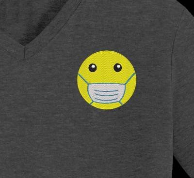 Motif de broderie machine gratuit stop au corona virus. émoticône avec un masque de protection.
